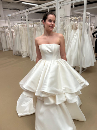 Understanding fabrics is at the heart of this process. The structure of mikado, the softness of tulle, the way lace can change the entire feel of a dress, the way crepe skims and satin holds. These details are not just design elements, they are what create comfort, confidence, and ease.
